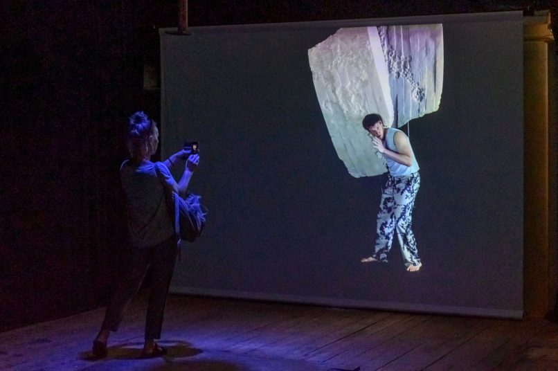 At ‘Part One’ visitors walk through the space one by one and come across five life-size projections. The penetrating films, made by Jessica van Rüschen and Boris van Hoof, bring you close to the performers and their world. The expanding time becomes tangible in movement. A pulsating movement seems to be passed from screen to screen. Time is unstoppable and neither is the movement.